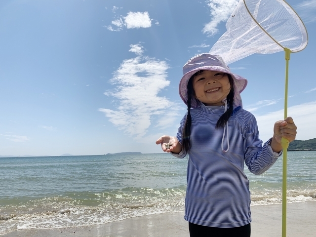 海の恵みを獲る地引網。皆さんで、力を合わせて網を引いてみませんか。獲れた魚は、BBQで焼いて食べます。
