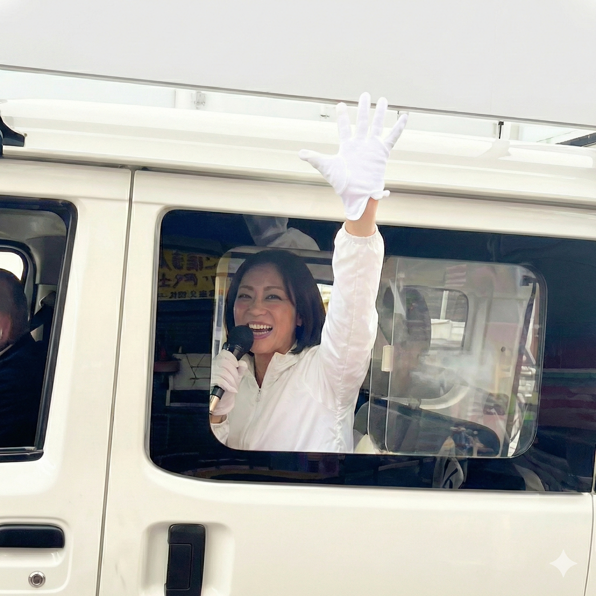 10年以上のMC・ウグイス経験。選挙カーから聞こえる声は候補者の「顔」。聞き取りやすく元気な声で、候補者へのポジティブなイメージを街全体に広めます。